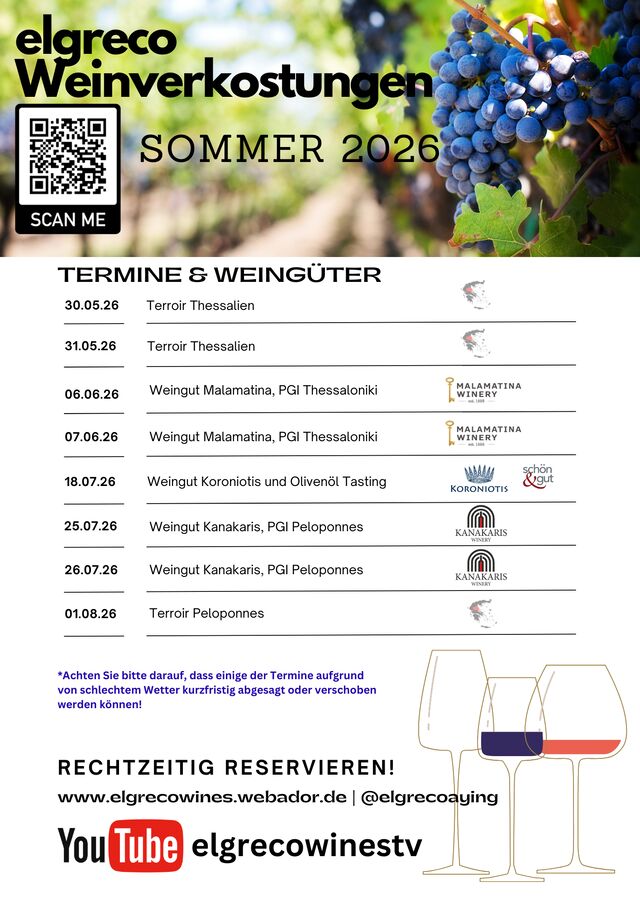 Griechische Wein von Feinsten, Peloponnes, Athen, Kreta, Thessalien, Berg Athos, Drama.... Rebsorten wie Assyrtiko, Roditis, Malagouzia, Xinomavro...